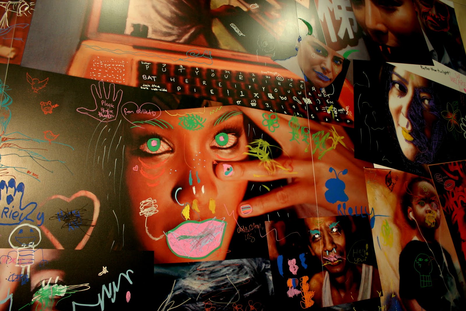 Drawing on art created by Vincent Fantauzzo in the Art Gallery. Some really cool textas were placed next to this huge pastiche of photos and visitors were invited to embellish them.