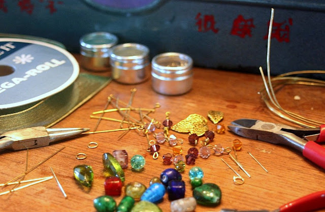 The kids had fun going through my stuff, picking out ribbon and pretty little things.